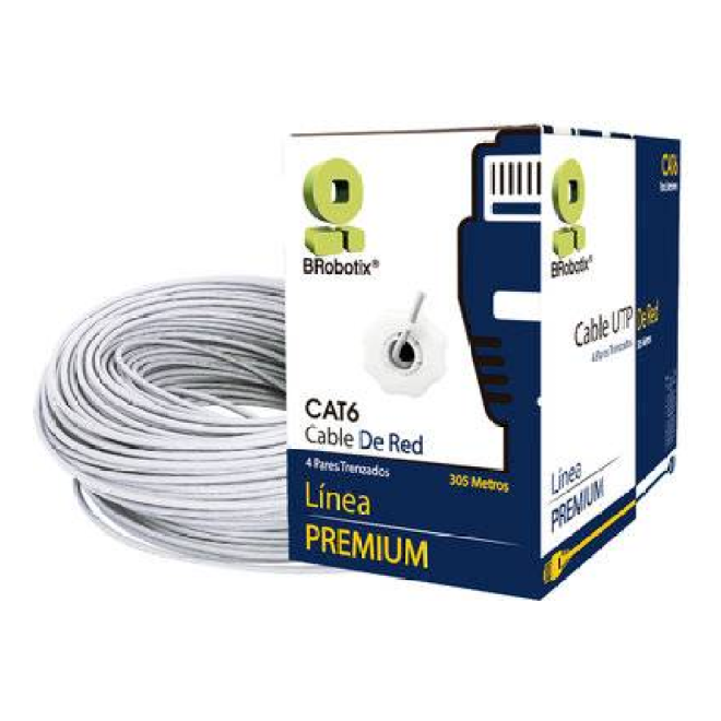 BOBINA CAT6 PARA INTERIORES CCA UTP, BLANCO, 305 METROS (6006801), Brobotix  Encuentra la solución completa para tu Red con la bobina CCA UTP CAT6 para interiores BRobotix. Aluminio con recubrimiento de Cobre (CCA). Ideal para transporte de datos, audio y vídeo. UTP, Par trenzado sin blindaje.  Presentación: caja. Especificaciones: La bobina de cable Cat6 cumple con los estándares EIA/TIA. Calibre 23 AWG. Color: Blanco