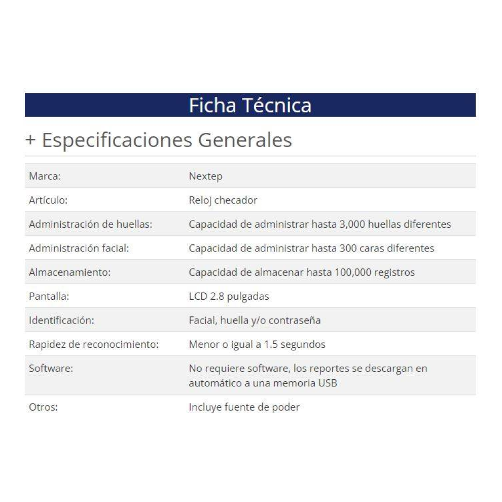 - Capacidad de almacenamiento de huellas dactilares: