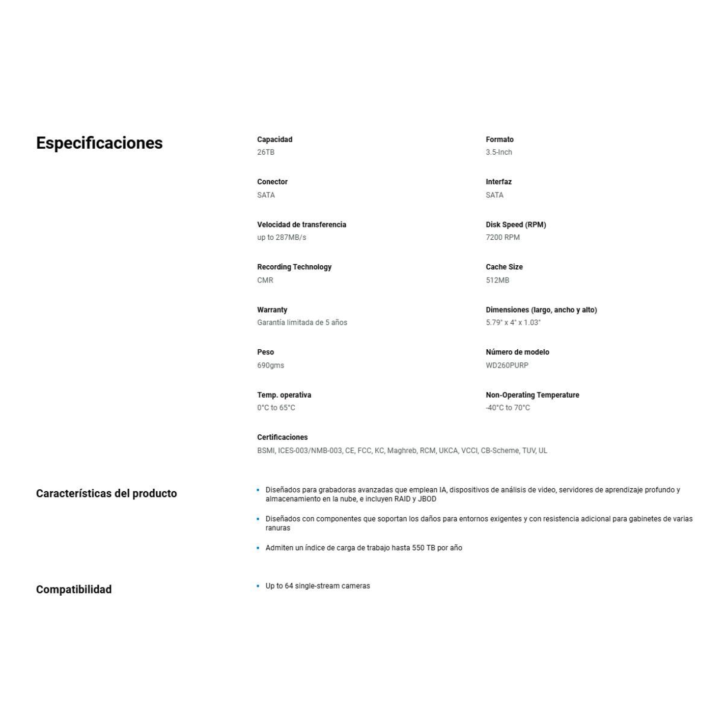 Discos Duros WESTERN DIGITAL WD260PURP
