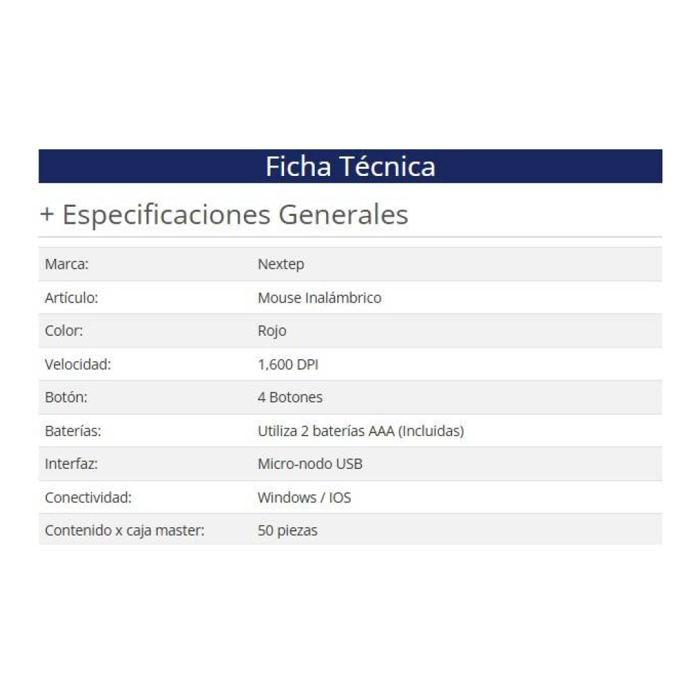 - Especificaciones: